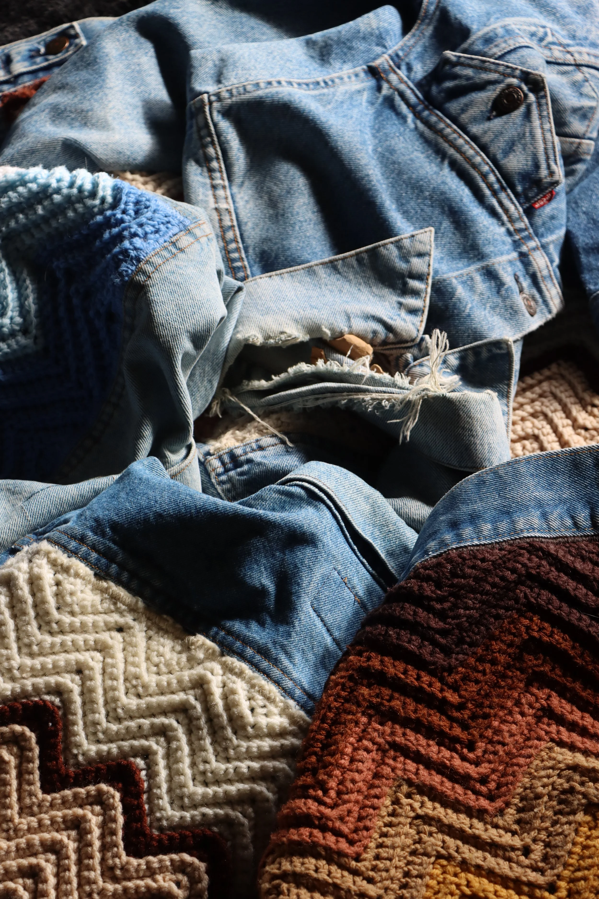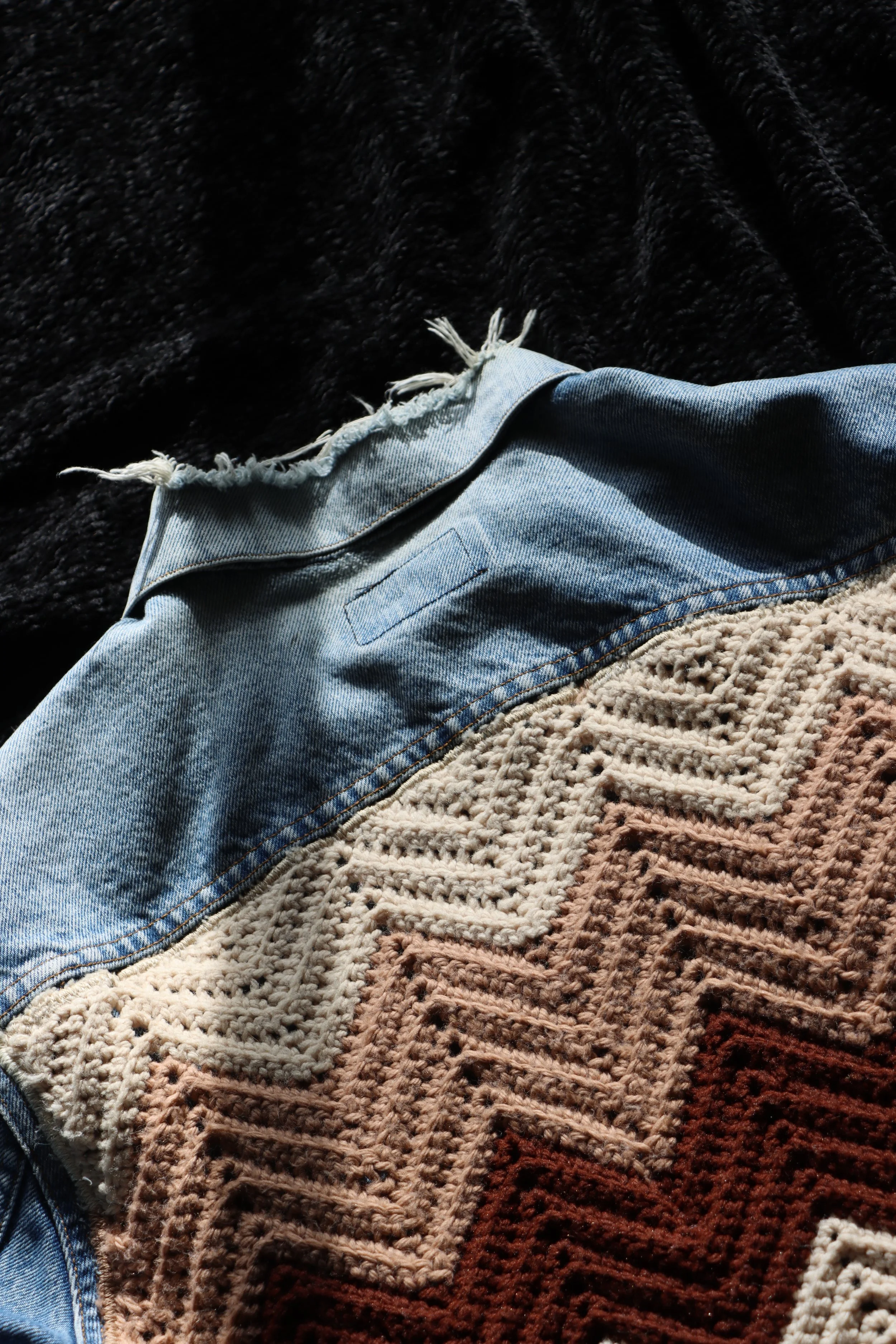 Introducing a timeless pairing that we hold dear at PATTY’S MARKET: a legendary USA-made Levi's denim jacket passed down through generations, artfully paired with the intricate handiwork of your grandmother's beloved handmade blanket...